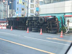 トラックが横転してました。